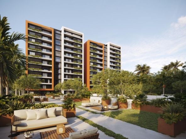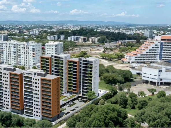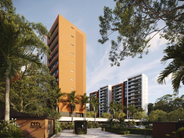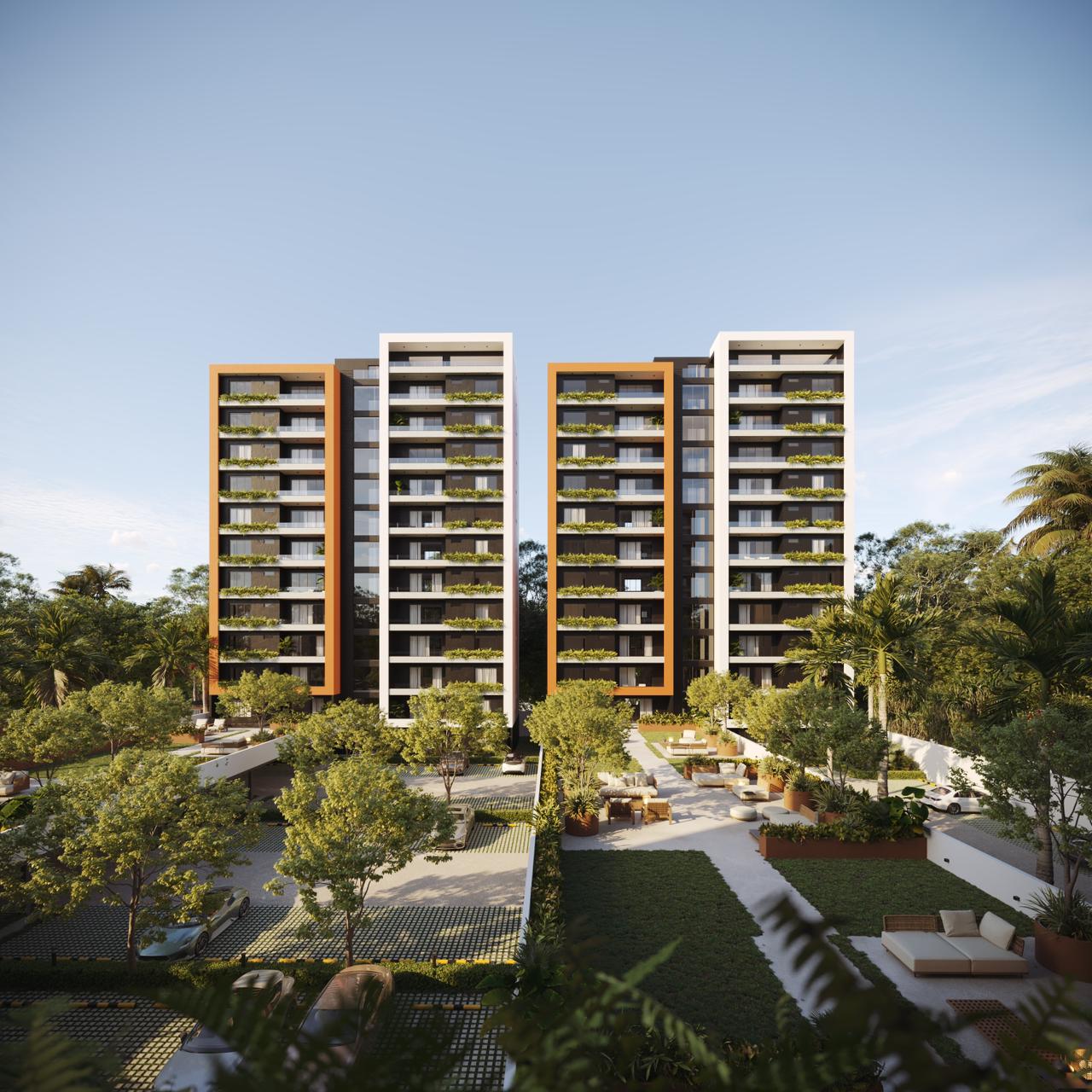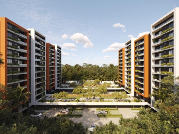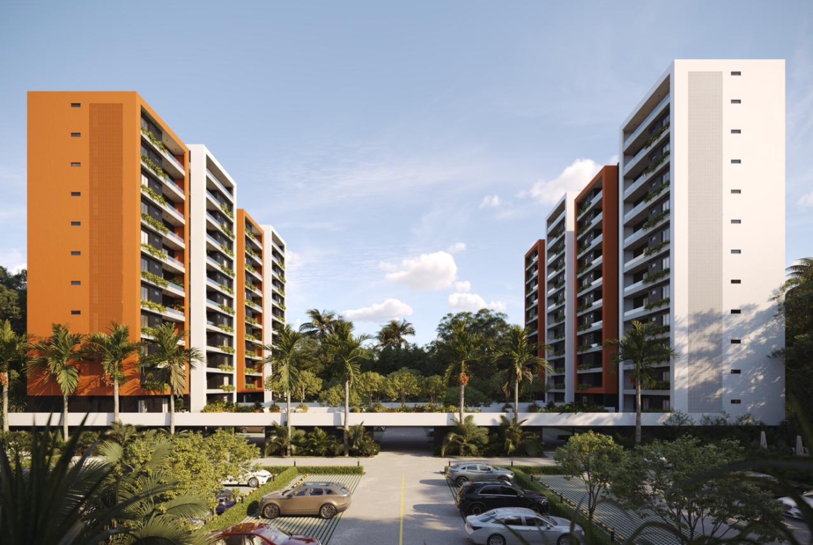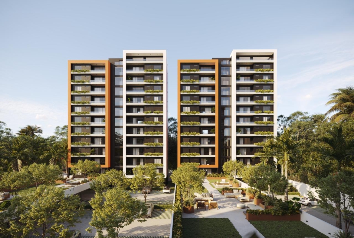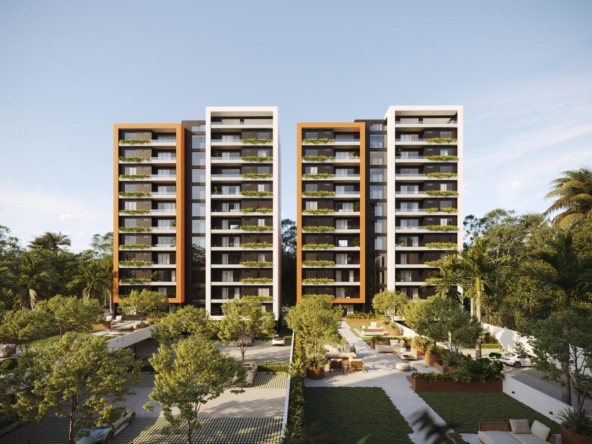 Las Torres residenciales TREO II, es un exclusivo proyecto residencial diseñado para ofrecer un estilo de vida de lujo y tranquilidad en un entorno armónico con la naturaleza. El proyecto se distingue por su composición arquitectónica, presentando cuatro imponentes torres residenciales de diseño contemporáneo, caracterizadas por sus fachadas modernas con toques de color tierra y amplios balcones adornados con vegetación, que integran la vida exterior con el confort interior.
