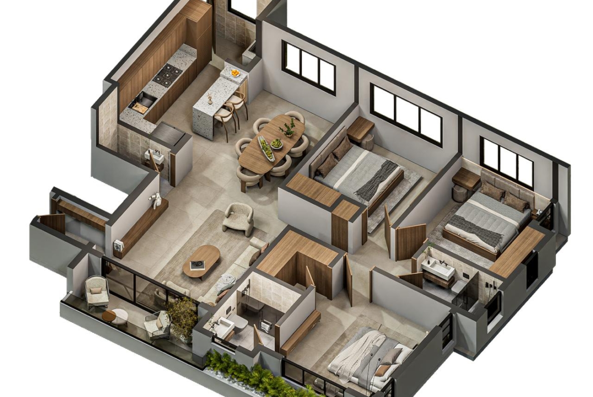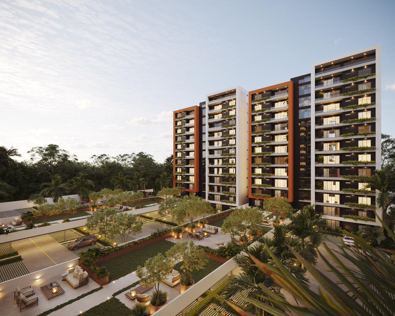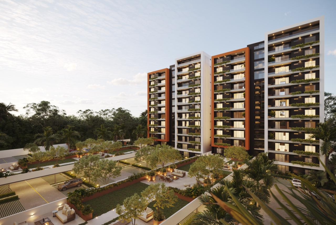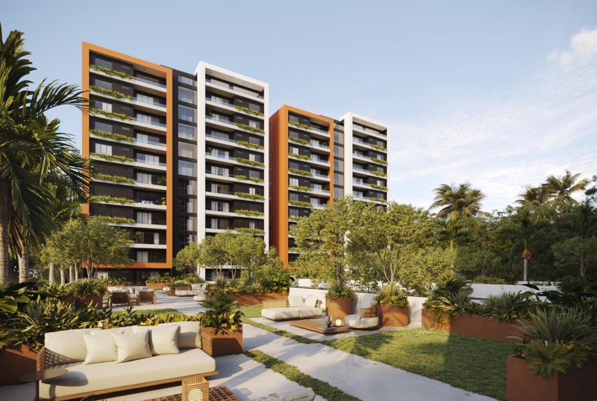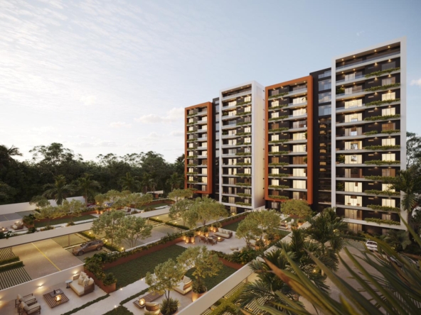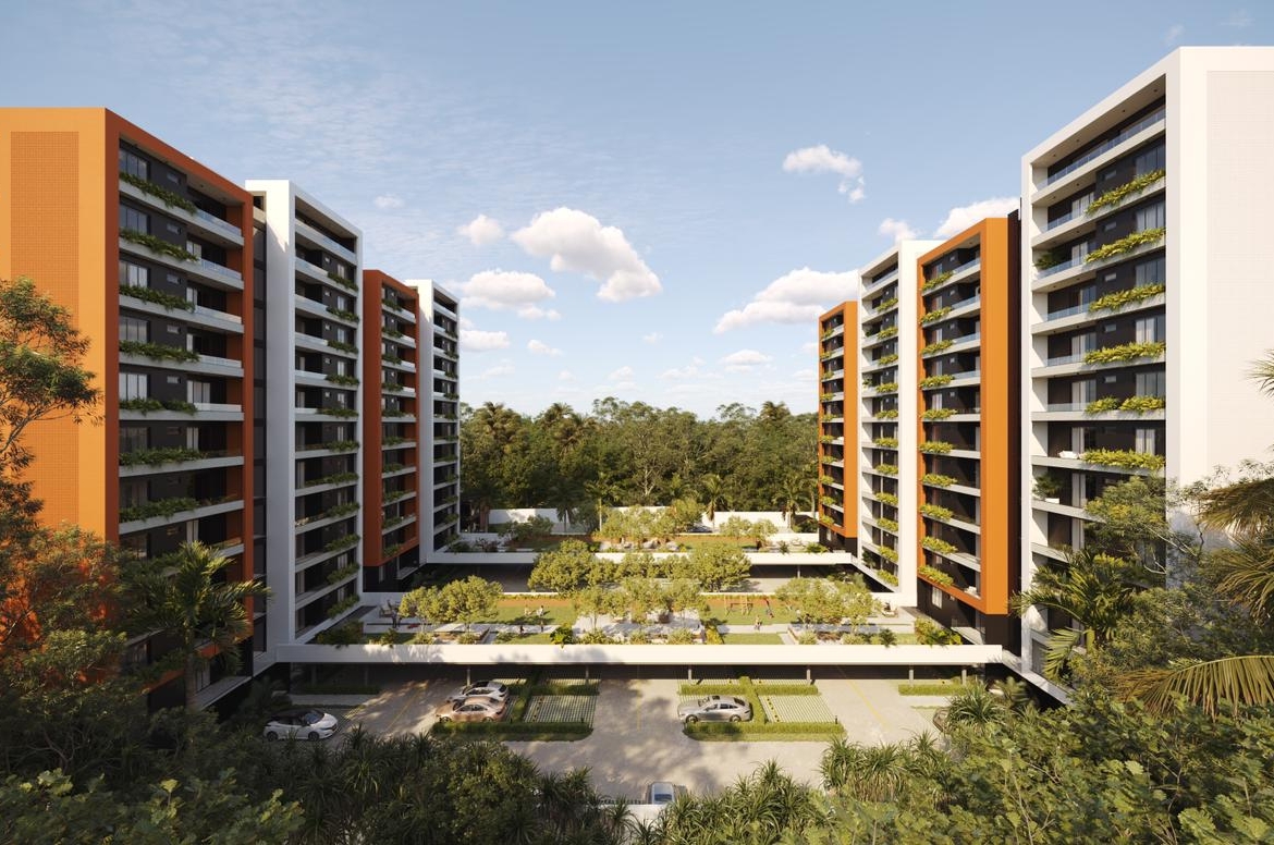 Las Torres residenciales TREO II, es un exclusivo proyecto residencial diseñado para ofrecer un estilo de vida de lujo y tranquilidad en un entorno armónico con la naturaleza. El proyecto se distingue por su composición arquitectónica, presentando cuatro imponentes torres residenciales de diseño contemporáneo, caracterizadas por sus fachadas modernas con toques de color tierra y amplios balcones adornados con vegetación, que integran la vida exterior con el confort interior.
