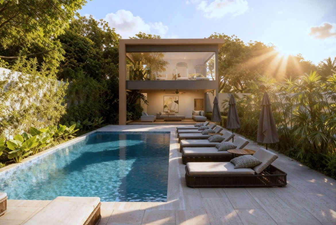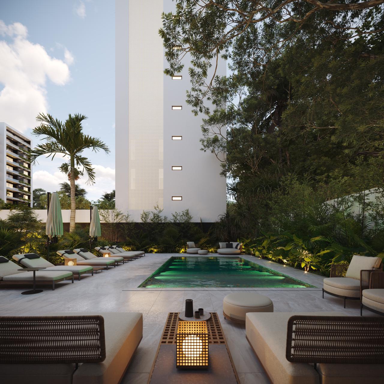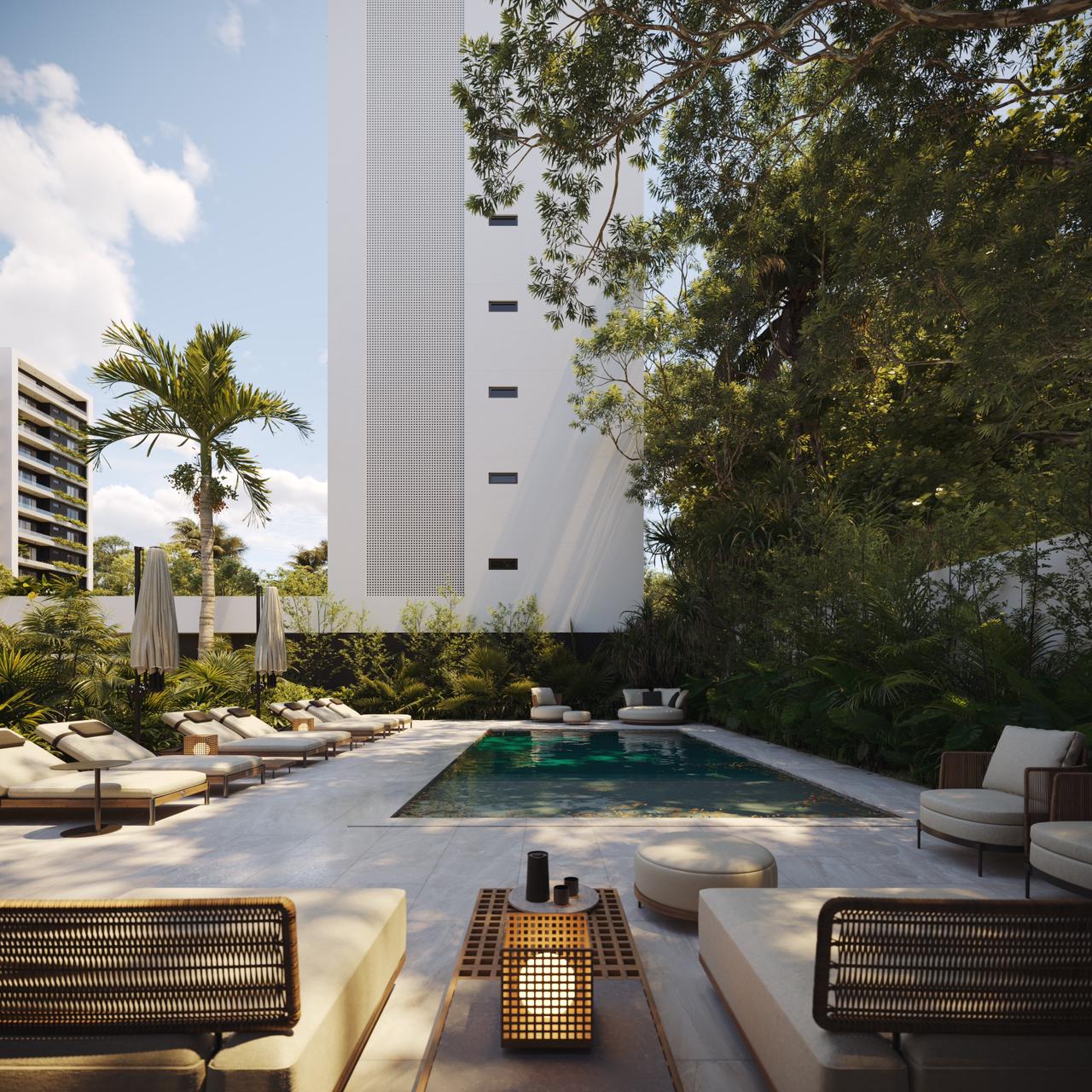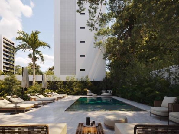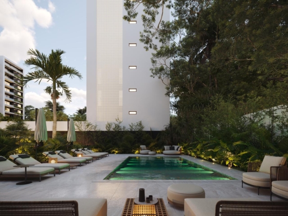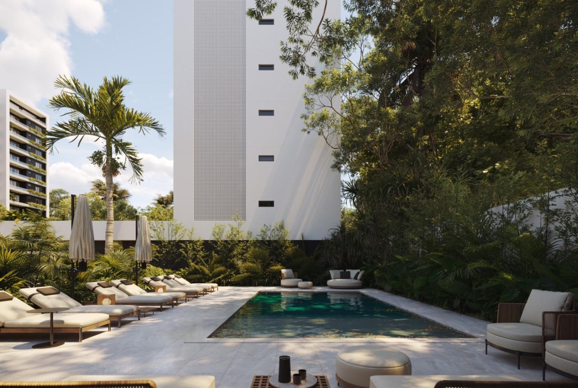 Las torres en TREO II están elegantemente unificadas por dos extensos parques y zonas verdes, creando un pulmón natural que fomenta el bienestar y la conexión con la naturaleza. El diseño exterior integra amplias zonas ajardinadas, caminos peatonales y áreas de estar al aire libre, con abundante vegetación tropical y palmeras que acentúan la sensación de retiro y frescura Este espacio está diseñado como el lugar perfecto para el disfrute y el esparcimiento, ofreciendo un oasis de calma y sofisticación para los residentes de TREO II, donde cada detalle contribuye a una experiencia de vida excepcional.