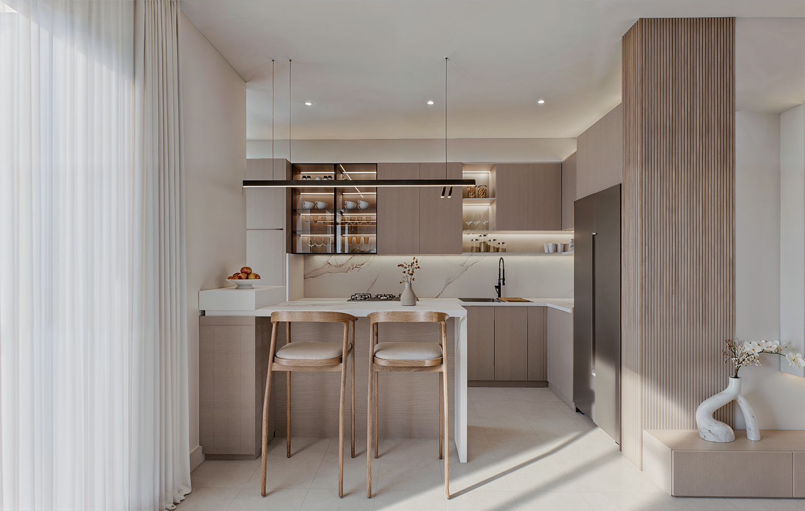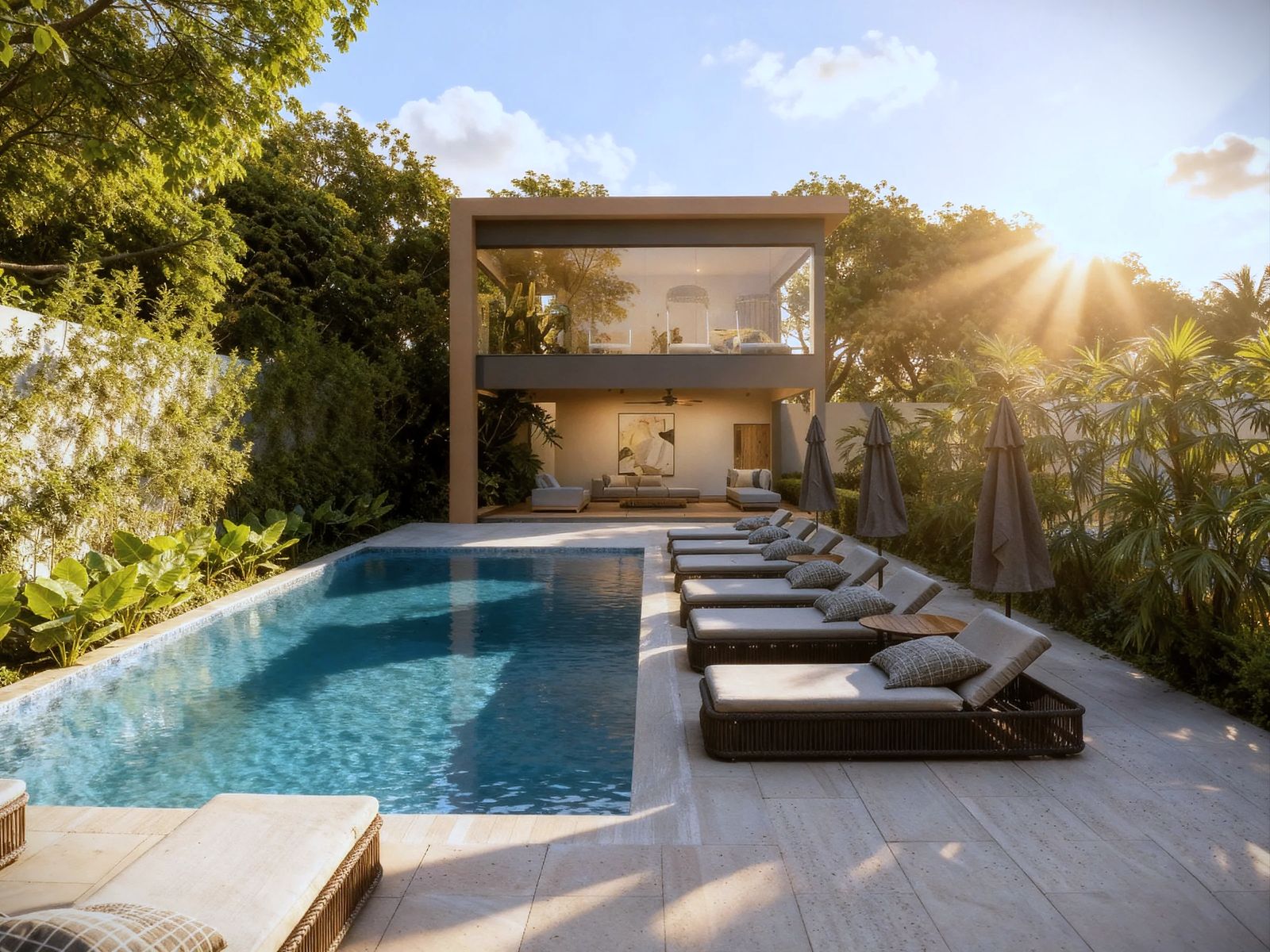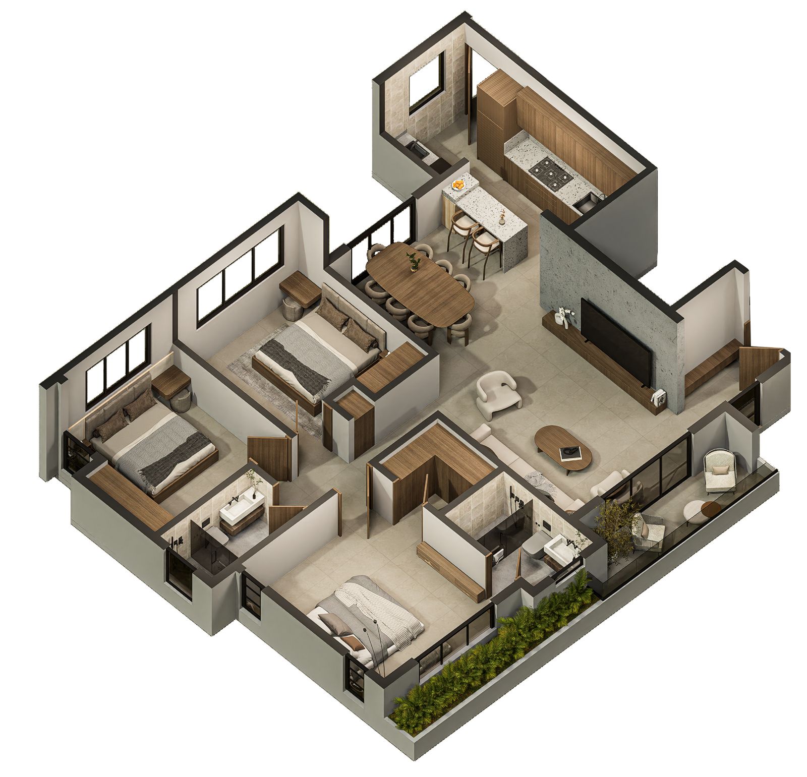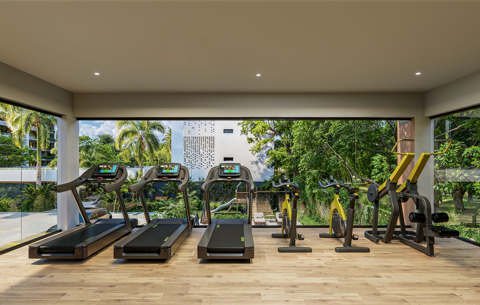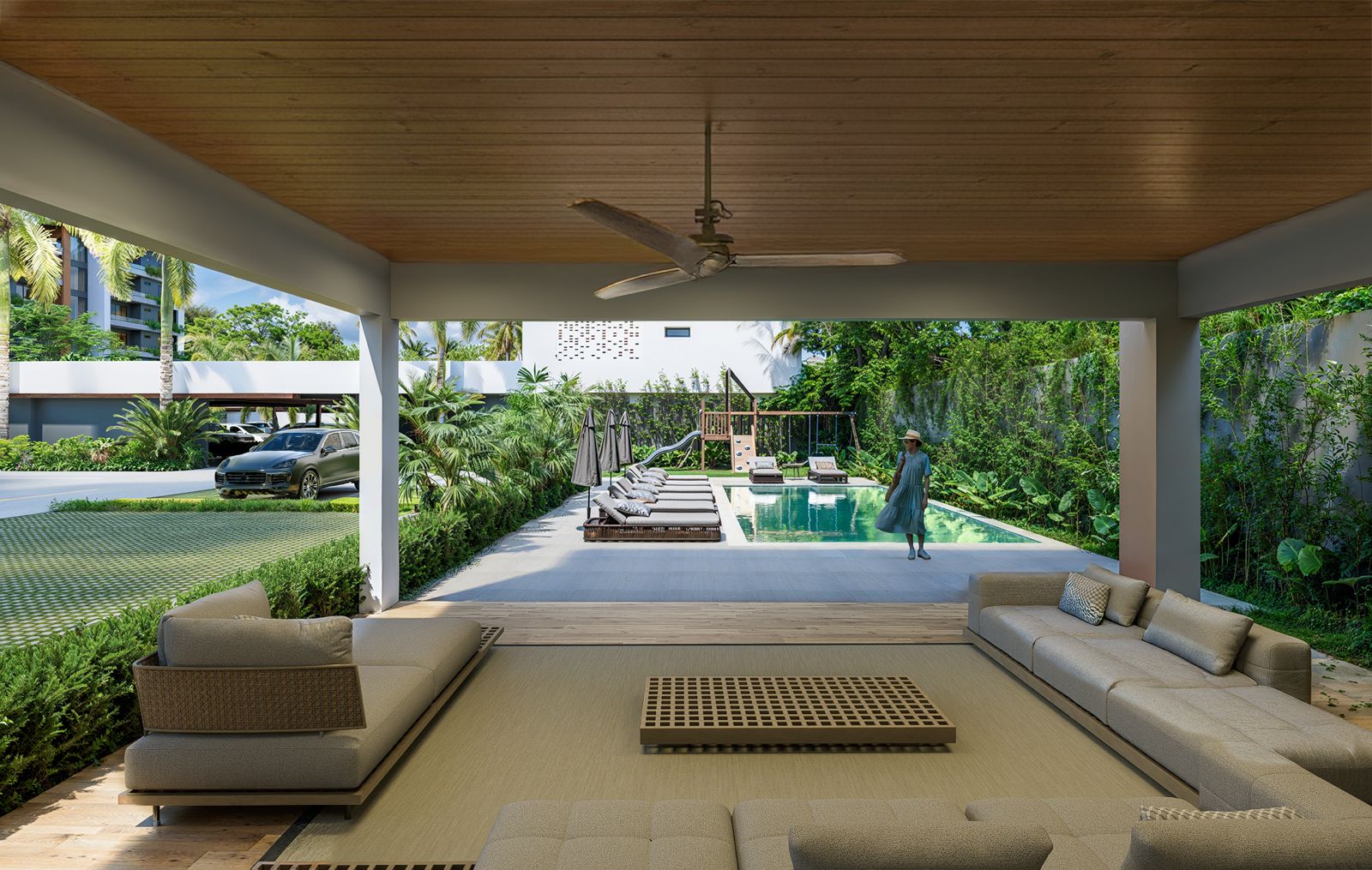 Las torres en TREO II están elegantemente unificadas por dos extensos parques y zonas verdes, creando un pulmón natural que fomenta el bienestar y la conexión con la naturaleza. El diseño exterior integra amplias zonas ajardinadas, caminos peatonales y áreas de estar al aire libre, con abundante vegetación tropical y palmeras que acentúan la sensación de retiro y frescura Este espacio está diseñado como el lugar perfecto para el disfrute y el esparcimiento, ofreciendo un oasis de calma y sofisticación para los residentes de TREO II, donde cada detalle contribuye a una experiencia de vida excepcional.